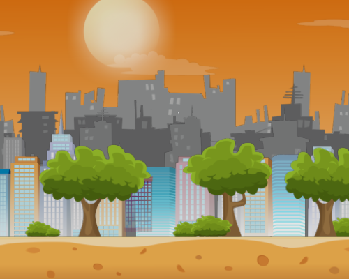 In our next example, we implement parallax as shown here. This image is created with eight layers. We will create a LightRenderable for each layer and encapsulate them in a ParallaxGameObject. These ParallaxGameObjects move can automatically with the Camera as it pans, but they each move at different speeds depending on the "scale" factor. The speed the ParallaxGameObject moves at is related to the movement of the Camera by the function, 1/scale, meaning that a scale of ten moves one tenth as fast and a scale of 0.5 moves twice as fast. We update the objects and draw in order from farthest to nearest.